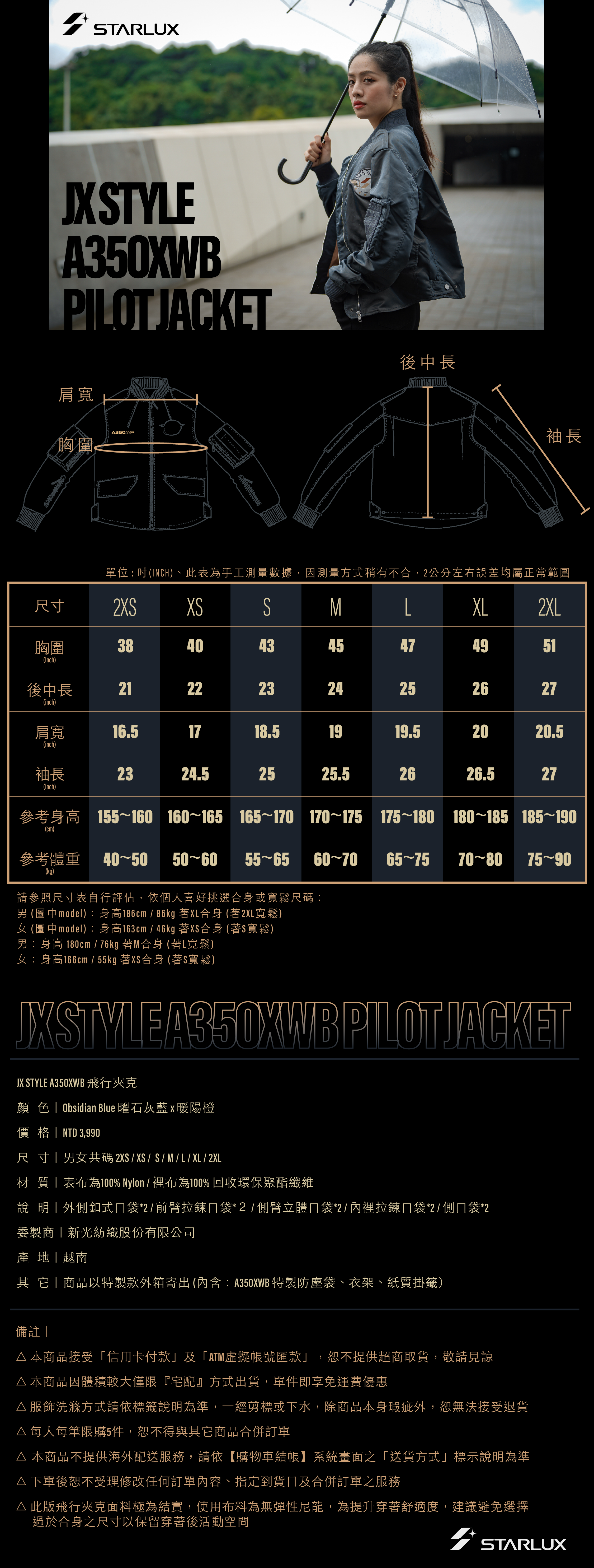 STARLUX | JX STYLE A350XWB 飛行夾克 (曜石灰藍 x 暖陽橙​)